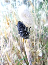 - Farbe: Dunkelgrau und schwarz glänzend mit 4 hellgrauen Flecken auf den Flügeln.