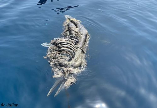 Es wurde Opfer von einem oder mehreren Geisternetzen, in denen es sich offensichtlich verfangen hatte. Beim Versuch, sich zu befreien, hat es sich immer mehr in das Netz gewickelt und ist dann ertrunken. Jeder kann sich vorstellen, wie qualvoll das Tier verendet ist.