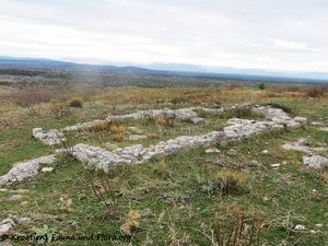 Bribirska glavica = Kuppe von Bribir Nördlich von Bribir, an der Grenze von Ravni Kotari und der Bukovica, erhebt sich ein 305 Meter hoher Hügel mit einem großen Plateau auf der Spitze, der Hügel Glavica mit einem Plateau von 7 Hektar Größe. Von hier aus kann man das Tal rundum im Auge behalten. Die Herrscher vieler Epochen haben sich hier niedergelassen und ihre Spuren auf diesem Hochplateau hinterlassen. Noch ist nicht alles ausgegraben, und wir dürfen gespannt sein, was noch alles zum Vorschein kommt.