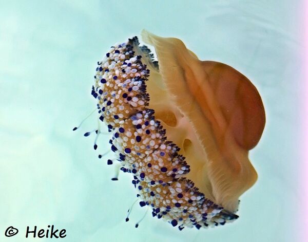 - Diese Qualle hat einen ausladenden Schirm mit einer deutlichen Erhebung in der Mitte (Spiegelei).
