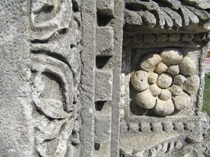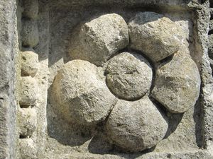 2013 konnte ich einige Fragmente der Säulen entdecken. Diese bestehen aus dicken, steinernen Scheiben, die ineinander verzapft wurden.