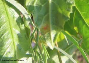 - ✔ Puccinia gnaphalii(Spegazzini) Hennings, 1902: er wächst in den Blättern, es entstehen erst helle, dann bräunliche Flecken.