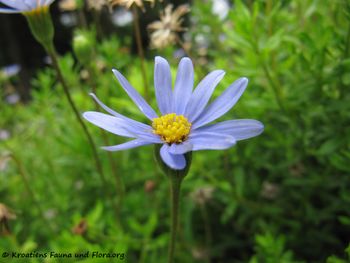 In Zadar I found this plant the first time. Felicia is native to South-Africa where she prefers sandy and dry habitats. As she blossoms the whole summer, she gladly is planted in parks – where I have found her.