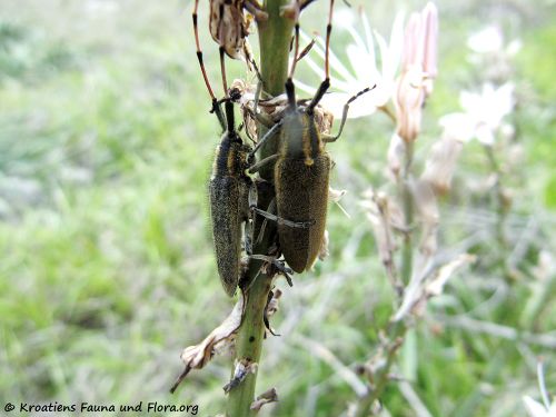 Agapanthia asphodeli Latreille, 1804 - hier sind die Männchen etwas kleiner als die Weibchen.